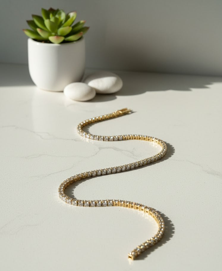 Zarafeti bileğinizde taşıyın! Işıltılı gold kaplama ve su yolu tasarımıyla her kombinle uyum sağlar. Günlük şıklığınızı tamamlayacak, özel anlarınıza zarafet katacak bu bileklik, sizin stilinizin yeni favorisi olacak.